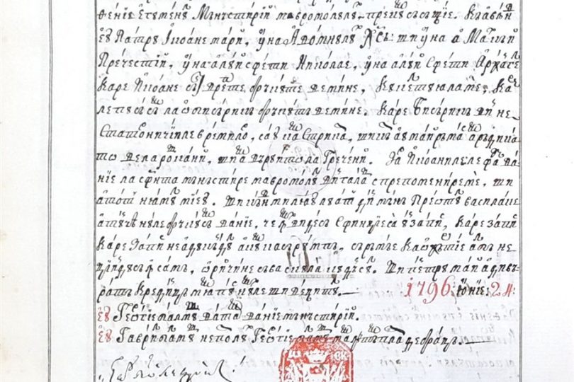 Transcriind o condică de documente ale Mănăstirii Mavromol din Galați, întocmită în anul 1816, mi‑am adus aminte de actul de danie făcut acestui așezământ monahal la 24 iunie 1796, semnalat în broșura din 1987, pe care‑l reproduc acum integral, însoțit de un comentariu: