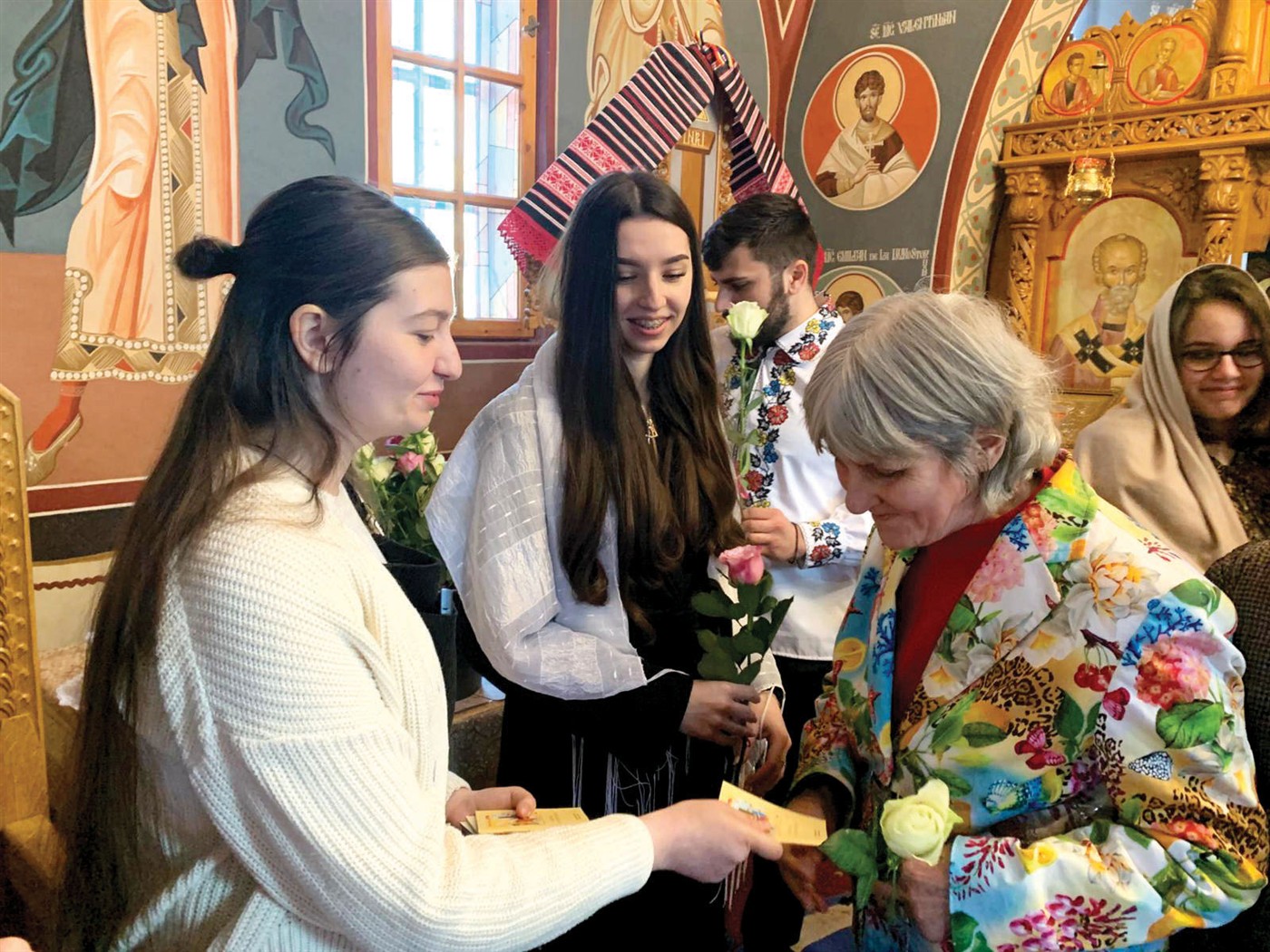 Frumusețea zilei de astăzi a fost fericit completată de faptul că ostenitoarele prezente la programul de lucru, vârstnicii bărbați și vizitatoarele au fost interesanți pentru tinerii şi tinerele care au oferit cu generozitate mărțișoare, iconițe, cărți de rugăciuni şi flori doamnelor, iar pentru domnii seniori iconițe și cărți de rugăciuni.