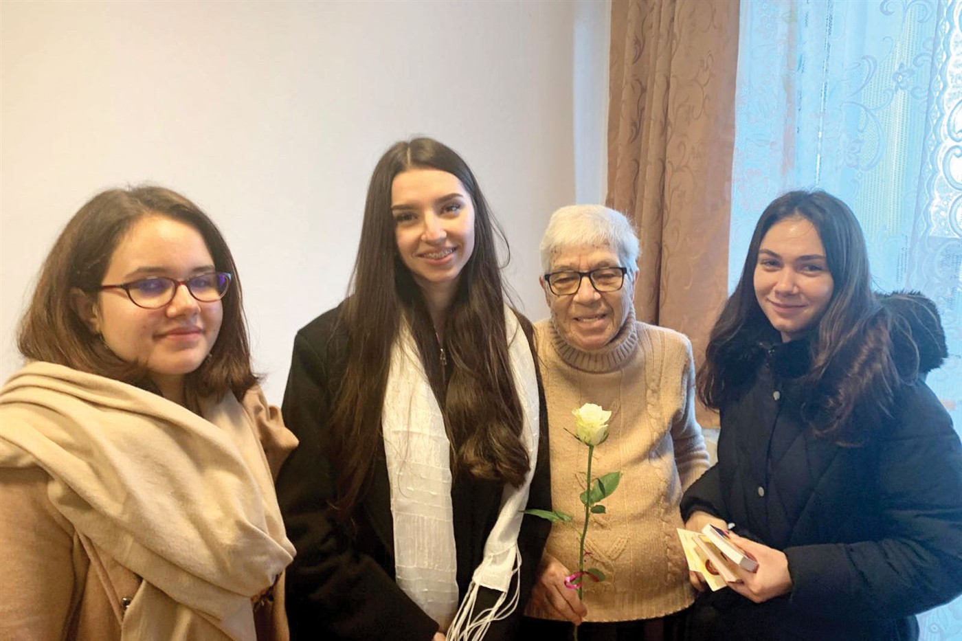 Vizita a fost una mai complexă decât am putea descrie în cuvinte, dar vom încerca să expunem bucuria născută în această zi. După multe zile încețoșate, am primit darul uneia pline de soare, de căldură, de lumină. Decorul natural a fost completat de acești tineri și tinere, care au rupt din timpul lor liber, în dorința lor sinceră de a aduce seninul și pe chipurile doamnelor pe care le avem în cercetare.