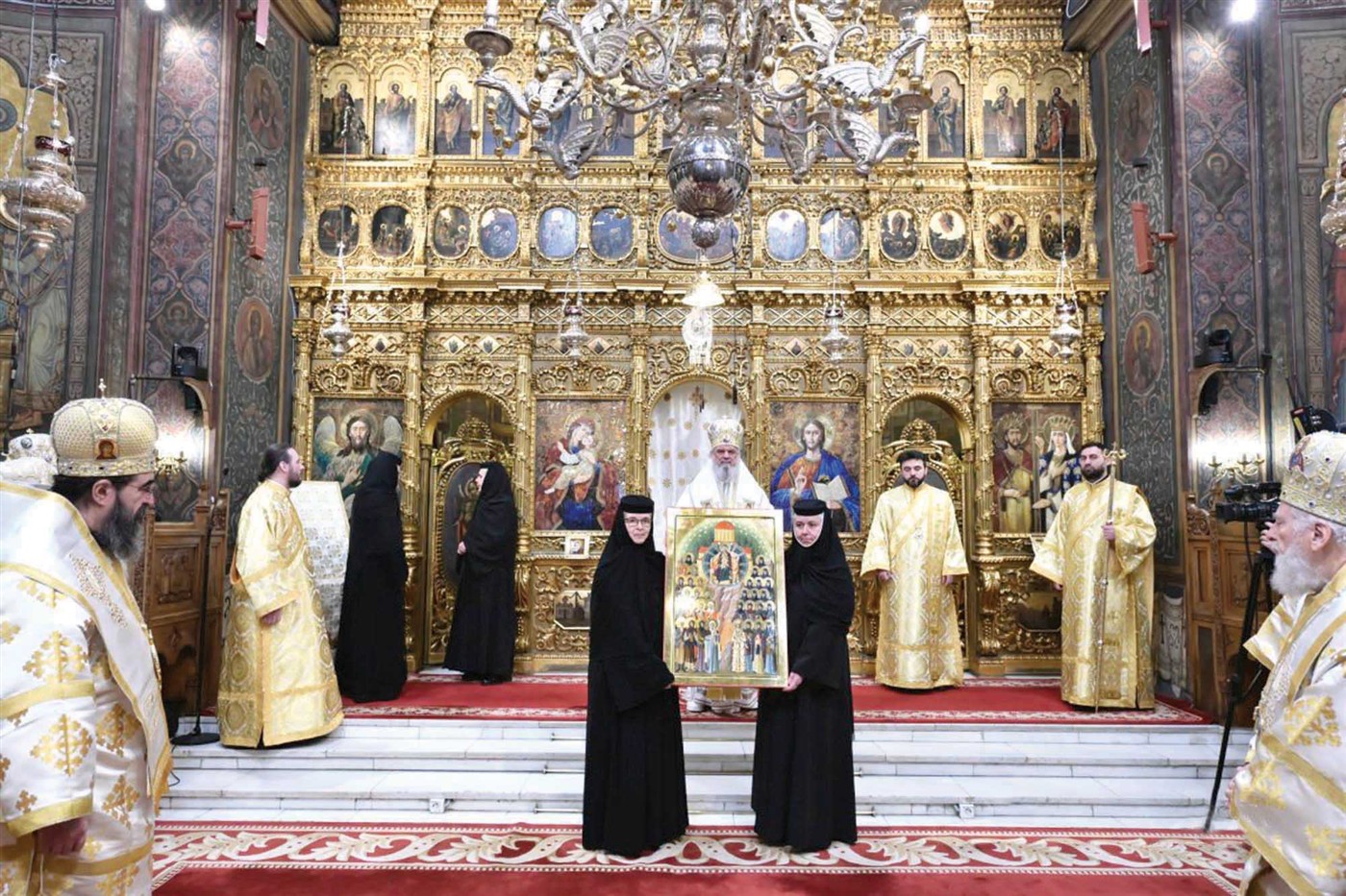 După citirea Tomosului sinodal, icoana Soborului Sfintelor Femei Românce și icoanele celor 16 noi sfinte au fost purtate de monahii și prezentate în Catedrala Patriarhală, în timp ce membrii Grupului psaltic „Tronos“ au interpretat troparele lor.