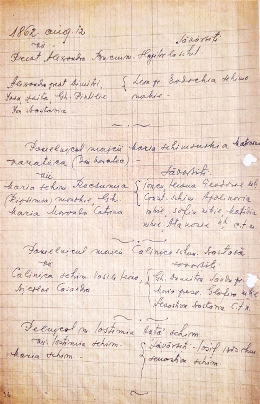 Astfel se explică numărul însemnat de schimonahii de la Buciumeni, consemnat în catagrafii și pomelnice păstrate în arhiva mănăstirii, unde tradiția isihastă s‑a transmis neîntrerupt din generație în generație prin maicile de la Văratec. Mutarea la Domnul a starețului Iosif, întemeietorul spiritual al Văratecului, în 1828, nu a însemnat stingerea lucrării sale duhovnicești. Maicile își aminteau învățătura sa, ca pe un testament viu, iar numele lui era rostit cu evlavie în ceasuri de sfat și rugăciune. Așezarea sa în pomelnicele maicilor arată că duhul învățăturii sale a continuat să hrănească viața ascetică a Buciumeniului. Un pomelnic din 1862, unde este trecut la cei săvârșiți: „Iosif ieroschim.“, stă mărturie acestei legături neîntrerupte, care a întrecut hotarele morții.