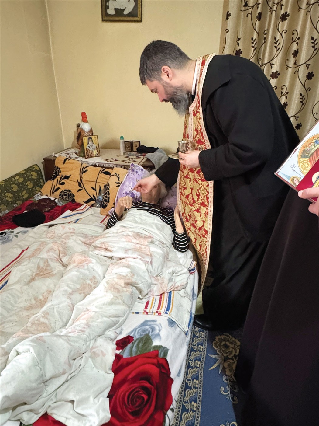 Așa am încercat, prin puțina noastră pricepere, să aducem în casele bunilor noștri bătrâni, cuvintele rugăciunii: „Cel Care miluiești cu liniștirea“. Ce liniște poate fi mai mare decât aceea când trupul primește ungerea cu untdelemnul sfințit, spre iertarea păcatelor, iar uneori, din rațiuni divine, chiar și vindecarea sufletească sau trupească! Ce bucurie sau cum am putea măsura bucuria lacrimilor care ani de‑a rândul au brăzdat obrajii parcă întineriți atunci când, în singurătatea omului, se așază comuniunea și comunicarea.