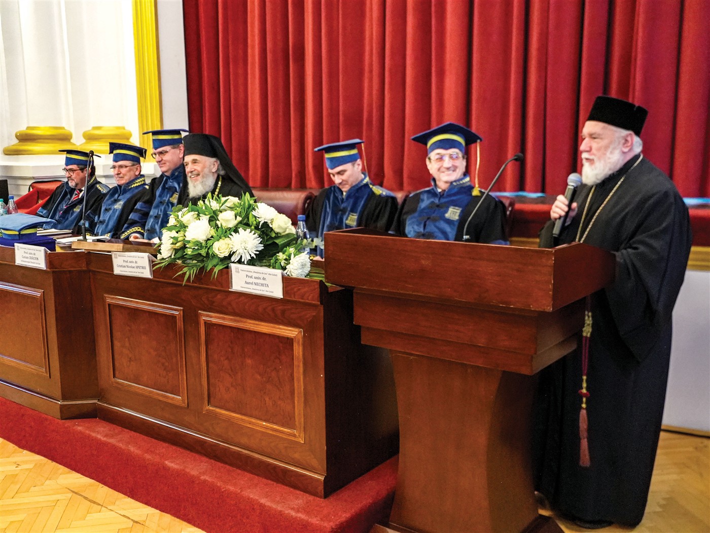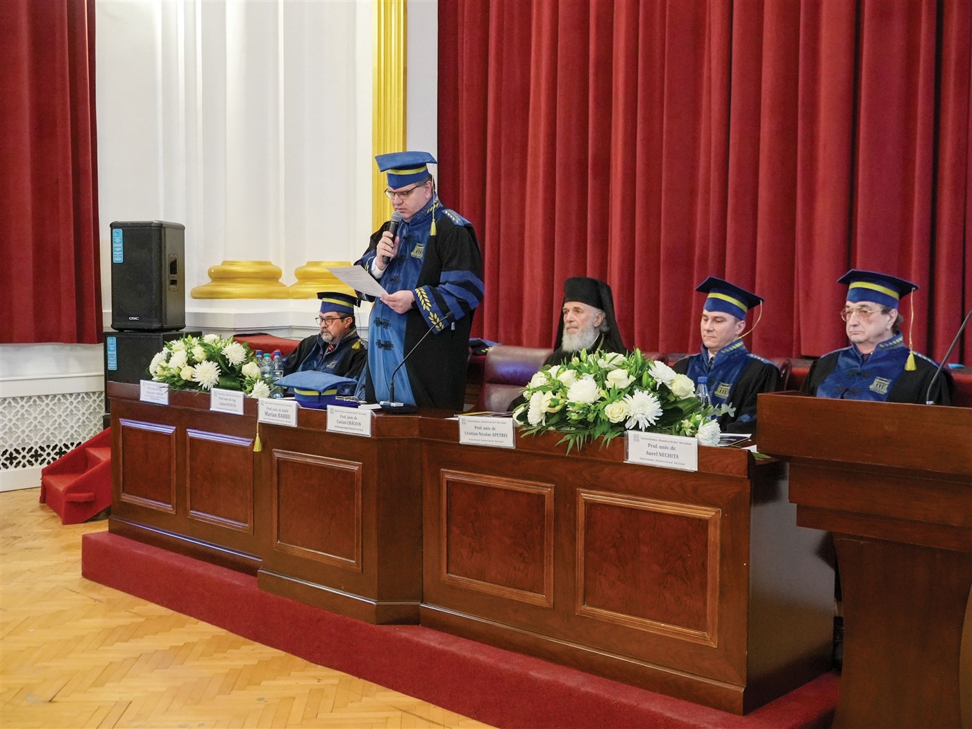 Prof. univ. dr. Cristian Nicolae Apetrei, decanul Facultății de Istorie, Filosofie și Teologie, a subliniat, prin referirea la propria devenire universitară, contribuția Înaltpreasfinției Sale la dezvoltarea culturii și educației la nivel local prin colaborarea între Arhiepiscopie și Universitate, prezentându‑se pe sine ca unul dintre beneficiarii acestei colaborări pe vremea studiilor doctorale, când s-a folosit de dotarea excepțională a bibliotecii eparhiale pe care chiriarhul Dunării de Jos a pus‑o la dispoziția tuturor studenților Univeristății.