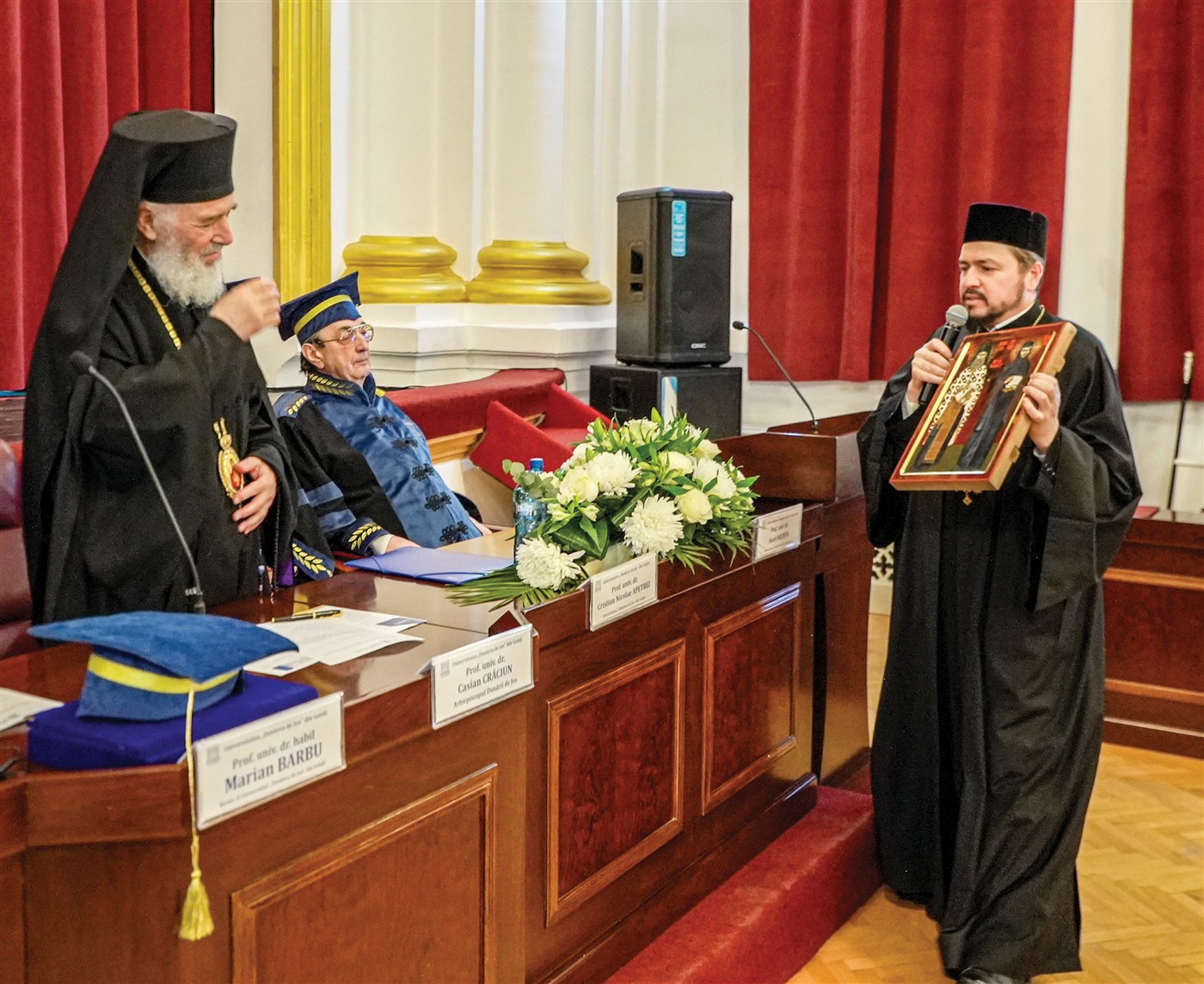 În încheierea Laudatio a fost prezentată activitatea științifică și opera scrisă, constând în 35 de volume de unic autor, 10 volume în calitate de coautor, 340 de articole și studii, 64 de mesaje pastorale, 210 prefețe și cuvinte‑înainte la diverse volume, precum și confirmarea și recunoașterea întregii activități a Înaltpreasfinției Sale, consfințită prin acordarea următoarelor distincţii: Ordinul Sfânta Maria Magdalena al Bisericii Ortodoxe a Poloniei, oferit de Mitropolitul Vasile, Primatul Bisericii Ortodoxe din Polonia (1989); Ordinul Sfinții Apostoli Petru şi Pavel al Mitropoliei de Veria, Naoussa, Kampania (Grecia), oferit de Înaltpreasfințitul Pantelimon, Mitropolit de Veria, Campania şi Nausa (1996); Ordinul Sfântul Apostol Andrei al Patriarhiei Ecumenice, oferit de Sanctitatea Sa Bartolomeu I, Patriarhul Ecumenic de Constantinopol (1999); Ordinul Voievod al Sfântului Mormânt, oferit de Patriarhul Diodor I al Ierusalimului (2000); Ordinul Naţional Pentru Merit, în grad de Mare Ofiţer, acordat de Preşedinţia României (2000); Ordinul Naţional de Onoare, acordat de Preşedinţia Republicii Moldova (2010); Ordinul Sfântul Petru Movilă, oferit de Mitropolitul Vladimir al Kievului şi Întregii Ucraine (2010); Ordinul Sfinții Martiri Brâncoveni pentru Ierarhi al Patriarhiei Române, oferit de Preafericitul Părinte Daniel, Patriarhul Bisericii Ortodoxe Române (2014); Ordinul Sfântul Ierarh Antim Ivireanul pentru Ierarhi al Patriarhiei Române, oferit de Preafericitul Părinte Daniel, Patriarhul Bisericii Ortodoxe Române (2016); Ordinul Sfântul Apostol Andrei pentru Ierarhi al Patriarhiei Române, oferit de Preafericitul Părinte Daniel, Patriarhul Bisericii Ortodoxe Române (2018); Ordinul Crucea Episcopiei Spaniei și Portugaliei (2019); Ordinul Episcop Roman Ciorogariu al Episcopiei Oradiei (2020); Ordinul Crucea eparhială al Episcopiei Basarabiei de Sud (2021); Ordinul Sfântul Cuv. Ioan Iacob de la Neamț, Noul Hozevit al Patriarhiei Române, oferit de Preafericitul Părinte Daniel, Patriarhul Bisericii Ortodoxe Române (2022); Ordinul Maica Domnului Rugătoarea (Oranta) al Patriarhiei Române, oferit de Preafericitul Părinte Daniel, Patriarhul Bisericii Ortodoxe Române (2022); Ordinul Sfântul Ierarh Martir Neofit Cretanul al Mitropoliei Munteniei și Dobrogei, oferit de Preafericitul Părinte Daniel, Patriarhul Bisericii Ortodoxe Române (2023); Ordinul Sfântul Cuv. Dimitrie cel Nou, Ocrotitorul Bucureștilor al Mitropoliei Munteniei și Dobrogei, oferit de Preafericitul Părinte Daniel, Patriarhul Bisericii Ortodoxe Române (2024); Ordinul Credință și comuniune al Patriarhiei Române, oferit de Preafericitul Părinte Daniel, Patriarhul Bisericii Ortodoxe Române (2025). După încheierea Laudatio, președintele comisiei a oferit cuvântul membrilor Comisiei, omagiul fiecăruia contribuind la conturarea personalității intelectuale, culturale şi duhovncești a Înaltpreasfinției Sale.