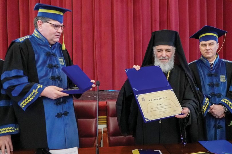 Festivitatea de decernare a titlului de Profesor Emerit petrecându‑se în săptămâna Sfintei Cruci din Postul Mare, cuvântul a plecat de la îndemnul Mântuitorului Iisus Hristos, Care ne chemă pe toți să‑I urmăm pe calea Crucii, asumându‑ne, fiecare în parte, crucea personală: „Oricine voiește să vină după Mine, să se lepede de sine, să‑și ia crucea și să‑Mi urmeze Mie“ (Mc. 8, 34). Iisus Hristos, luând Crucea din iubire și din ascultare față de Tatăl și pentru iubirea față noi oamenii, frații Săi prea mici, ne cheamă și pe noi să răspundem iubirii Lui Dumnezeu, în Biserică, prin iubirea arătată aproapelui, manifestată prin brațele deschise către acesta, a arătat Înaltpreasfinția Sa: „Aici Dumnezeu nu este Departele, aflat acolo, Sus, doar în Ceruri. Este şi acolo, și aici, este în noi! Este în mine, dacă eu sunt în tine, fratele meu, indiferent cine ești, unde ești și ce ești în lumea ta! Tu nu ești doar în tine. Ești în Dumnezeu, dar ești în mine, cum eu sunt în Dumnezeu, pentru că mă lași, din libertate și responsabilitate filială și fraternă, din darul lui Hristos cel Personal, să te îmbrățișez de la distanță fizică și somatică în cea transfigurată, curățită, înnoită, iertată și bucurată, în ceea ce ne unește ca persoane și nu în ceea ce ne deosebește trupește, biologic, conceptual, rațional, economic, social și temporal. Fără tine, fratele meu, pe care te țin în mine, în sinele meu îngust și egoist, pătimaș și fățarnic, nu am cum să‑L întuiesc măcar, darmite să mă gândesc și să‑L ating într‑un cuvințel pe Dumnezeu“.