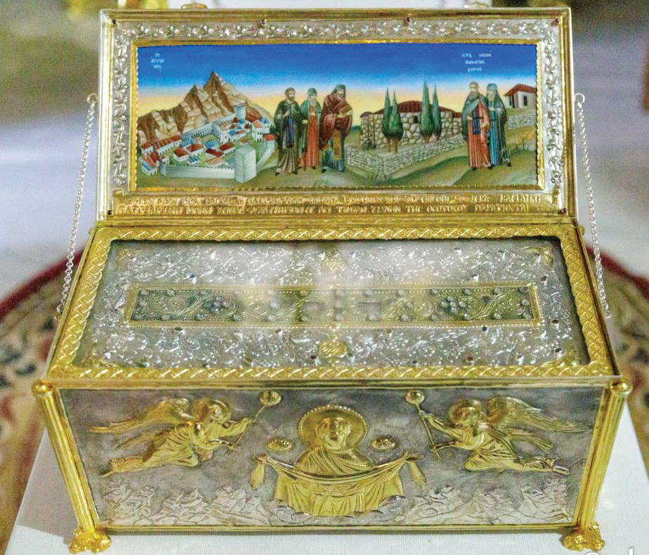 În urmă cu un sfert de veac (19‑21 octombrie 2001), la inițiativa ÎPS Arhiepiscop Casian (pe atunci Episcop al Dunării de Jos), în orașul de reședință al eparhiei, Galați, a fost adusă de la Mănăstirea de monahii Kato Xenia (în apropiere de orașul Almyros Volos, prefectura Magnezia, Grecia), în procesiune solemnă, o raclă cu două părticele din Brâul Maicii Domnului, care se păstrează în această mănăstire și care a fost oferită obștii monahale de acolo, ca dar, de Mănăstirea Vatoped din Sfântul Munte Athos, în anul 1552.